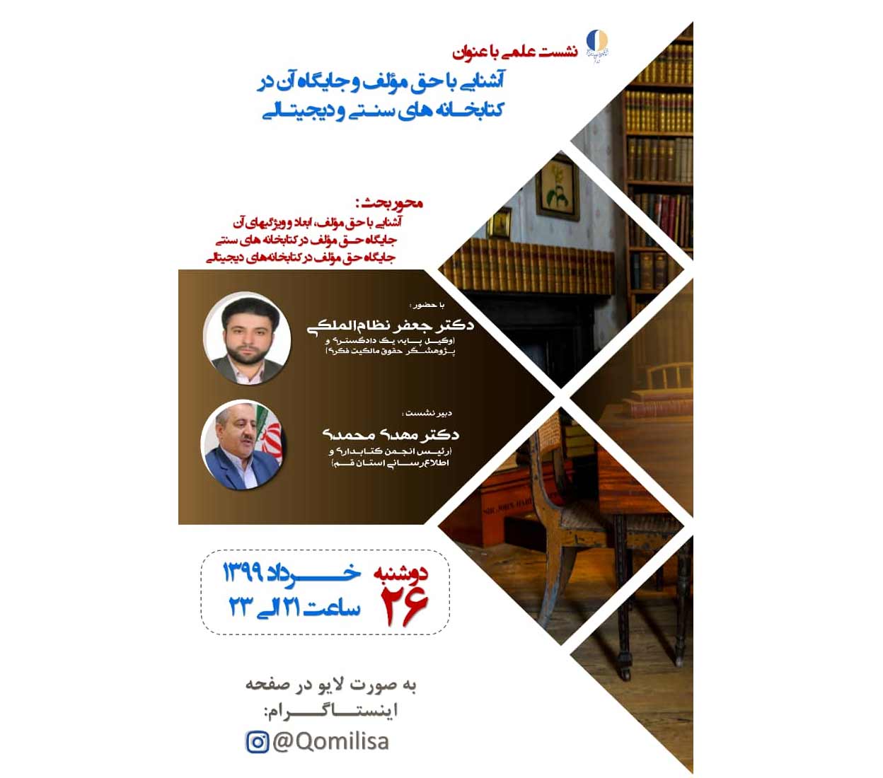 به صورت لایو در صفحه اینستاگرام انجمن کتابداری و اطلاع رسانی استان قم: (qomilisa@)